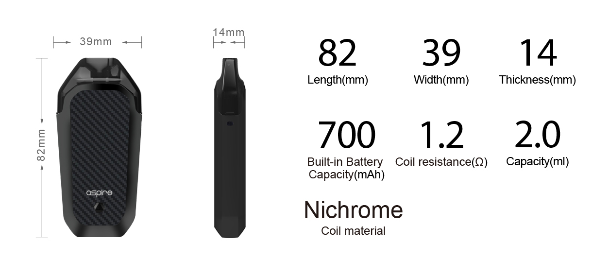 Gövde / Tip: 82 mm x 39 mm x 14 mm Boyutlarındaki Aspire AWP 12 W Gövde Üzerinde Bir Adet Watt Ayar Tuşuna Sahiptir. Yine Gövde Üzerindeki Şarj Girişi Sayesinde Şarj