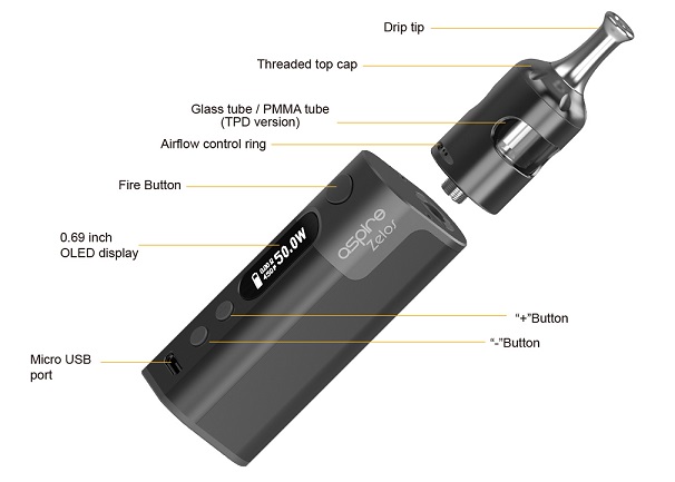 Aspire Zelos 2 50W Kit ile birlikte gelir