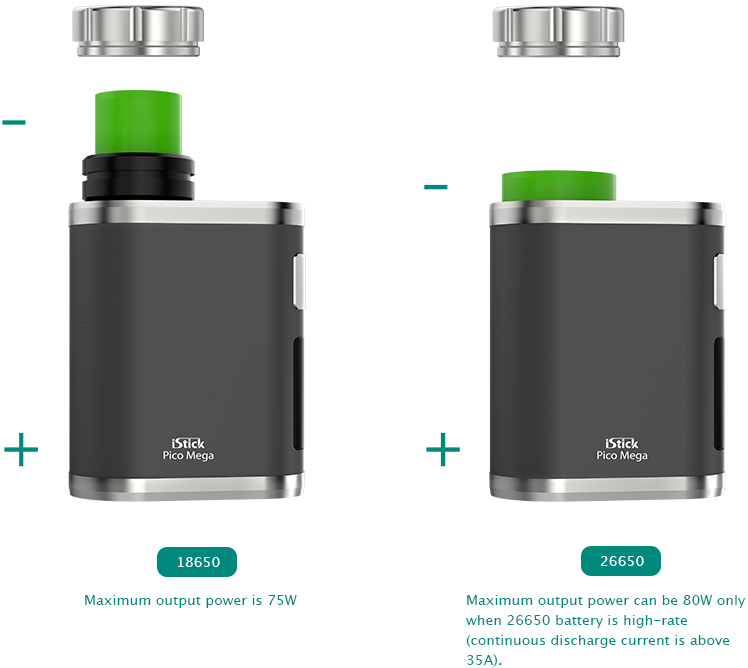 Kompakt boyutuna rağmen,iStick Pico 75W maksimum çıkışı ve değiştirilebilir
