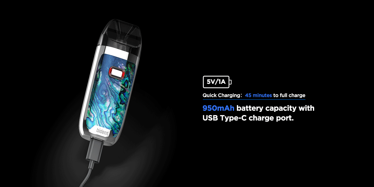 Geek Vape BIDENT Pod Sistemi,büyük bir batarya kapasitesi ile karşınızda.950 mAh batarya kapasitesi gün boyu kullanım için üretilmiş olan bident pod hafif ve naif tasarımı ile oldukça dikkatleri üzerine çeken bir cihazdır. Dayanıklı çinko alaşımından inşa edilen BIDENT'in dış profili görsel olarak dikkat çekicidir ve 3 kademeli bir güç çıkışı sağlayan dahili Micro AS Chipset mevcuttur. Yüksek performansı sayesinde ise salt likitlerin aroma ve buhar performansı oldukça yüksek ve verimli olmaktadır. İkili bobin teknolojisini kullanan BIDENT,sırasıyla 0.6ohm ve 1.2ohm DTL ve MTL Coilleri kullanılabilmektedir.