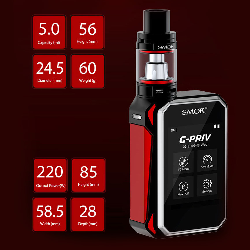 Smok ailesinin en güzel modellerinden ve ileri düzey esigara kullanıcıları için tasarlanmış olan Smok G-PRIV 220W Kit satışa sunulmustur.Piyasanın en iyi fiyatıyla karşınızda