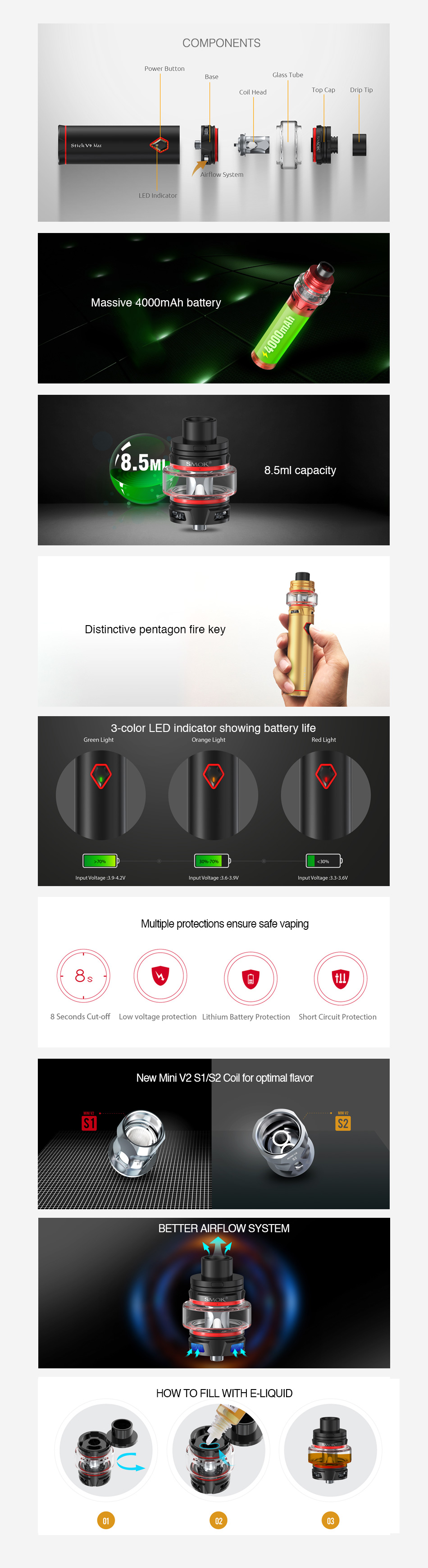 SMOK Stick V9 MAX Batarya Özellikleri: