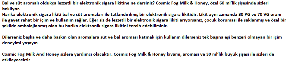 Cosmic Fog Milk Honey (Bal Ve Süt Aromalı) 60ML
